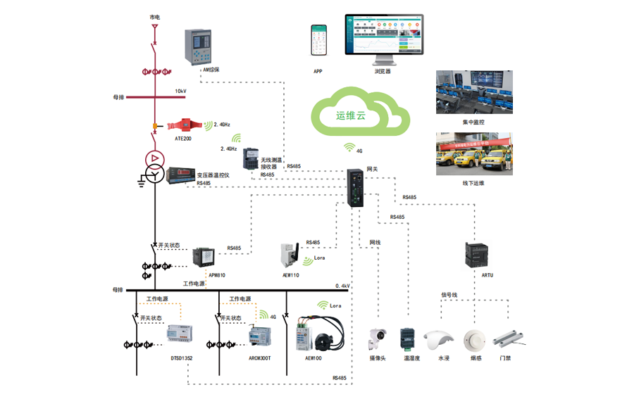 實時監(jiān)測變電所的運行環(huán)境,包括環(huán)境溫濕度、水浸、門磁、煙感、線纜溫度等,并可實現(xiàn)視頻監(jiān)視和錄像回放;