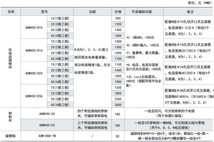 環(huán)保分表計(jì)電設(shè)備ADW400:三相電流,電壓,電能測量,配套3只開口式互感器,電流規(guī)格100A;400A;600A