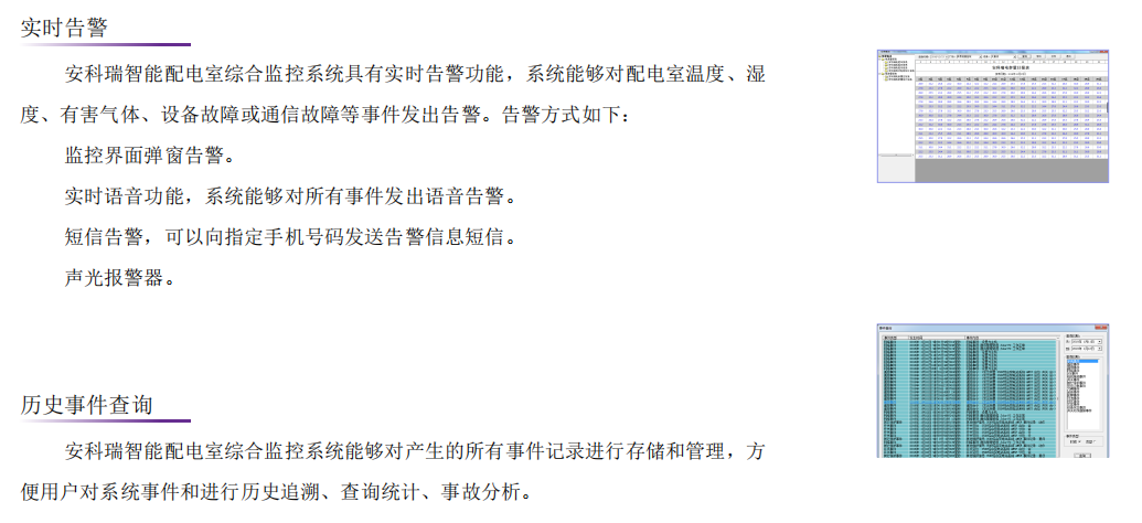 Acrel-2000E配電室綜合監(jiān)控系統(tǒng),可實現開關柜運行監(jiān)控、高壓開關柜帶電顯示、電流電壓等負載運行監(jiān)測、母線及電纜測溫監(jiān)測、環(huán)境溫濕度監(jiān)測、有害氣體監(jiān)測、安防監(jiān)控,可對燈光、風機、除濕機、空調控制等設備進行聯動控制。實現動力環(huán)境各數據的檢測與設備控制,優(yōu)化動力環(huán)境,避免運行環(huán)境的失控導致配電設備運行故障,保證維護人員安全,延長設備使用壽命,實現配電動力環(huán)境的分布式遠程管理。