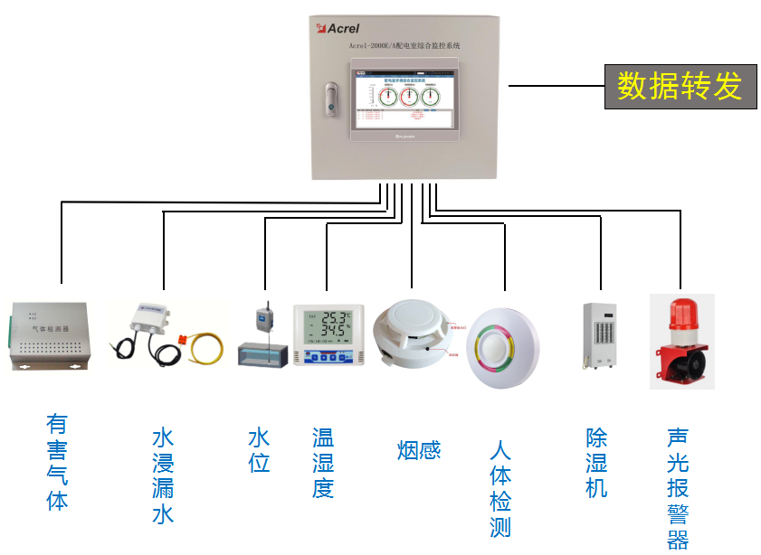 安科瑞電氣股份有限公司根據配電室實際情況,結合多年的變電站和配電室的運行管理經驗,自主研發(fā)了Acrel-2000E配電室綜合監(jiān)控系統(tǒng)系列化產品,通過采集配電室的溫濕度、水浸、煙感、門禁、氣體和視頻等相關數據,及時掌握配電室現場情況,通過可靠的聯動策略實現系統(tǒng)的有機集成,有效解決了視頻監(jiān)測、環(huán)境監(jiān)測、安全警衛(wèi)、門禁、消防和智能控制之間的互聯互通,降低了系統(tǒng)的建設成本。
