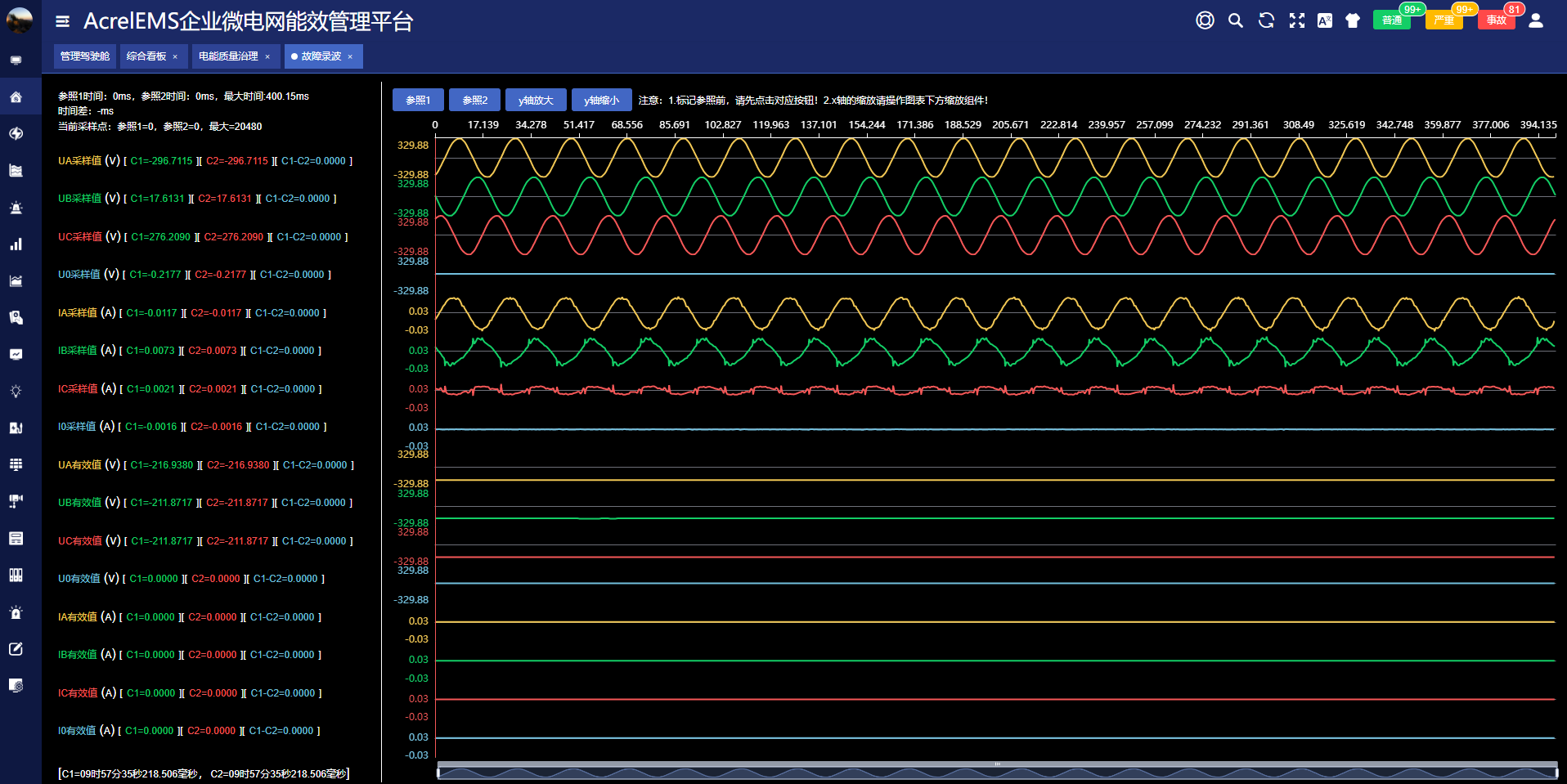 平臺可實時監(jiān)測配電系統(tǒng)的諧波畸變、電壓波動、閃變和容忍度指標分析配電系統(tǒng)的電能質量。