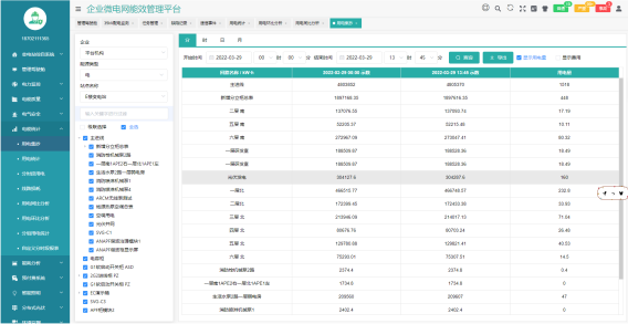平臺具備定時抄表匯總統(tǒng)計功能,用戶可以自由查詢平臺正常運行以來任意時間段內各配電節(jié)點的用電情況。