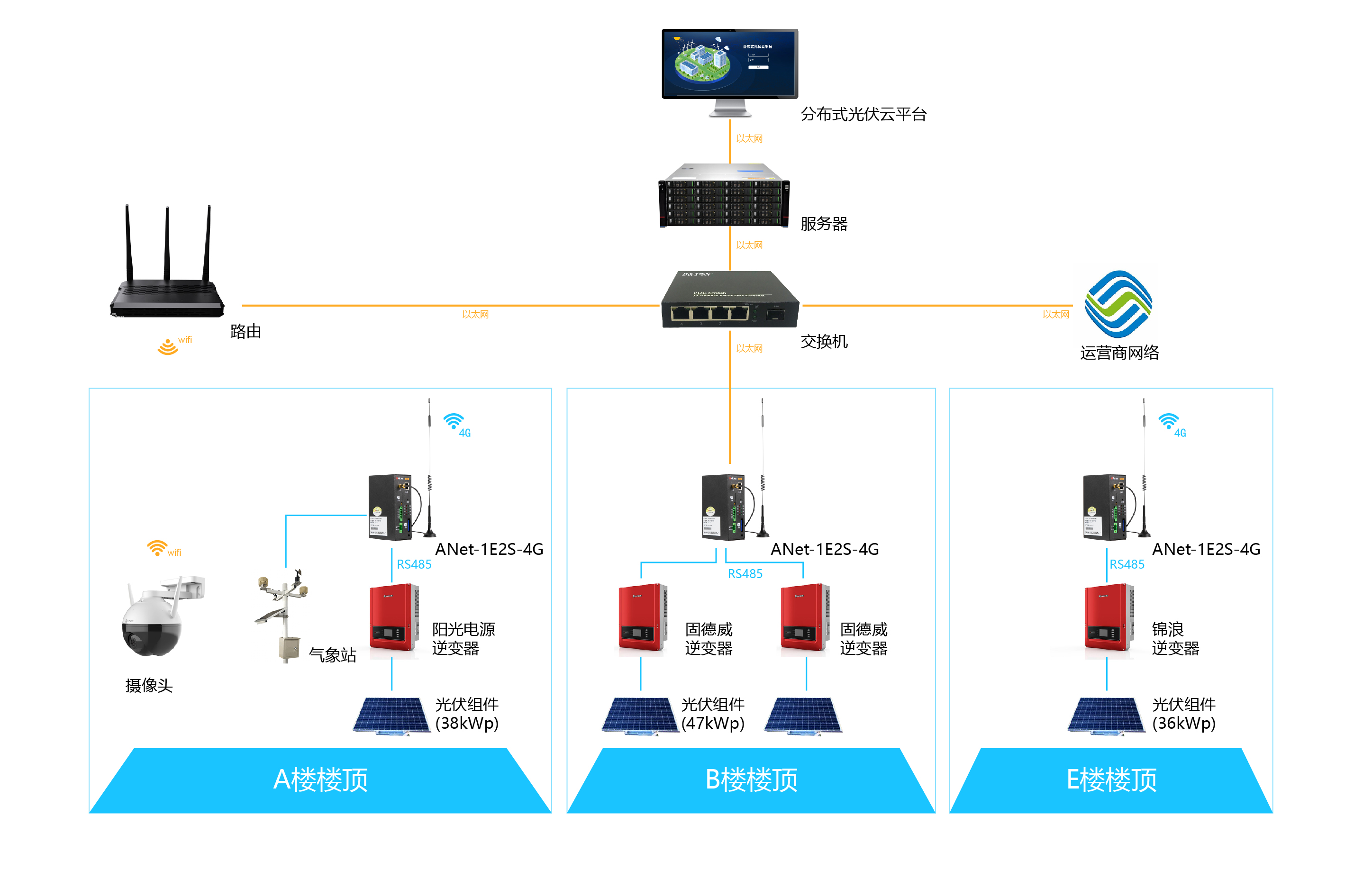 攝像頭實時監測現場環境,并且接入輻照度、溫濕度、風速等環境參數。