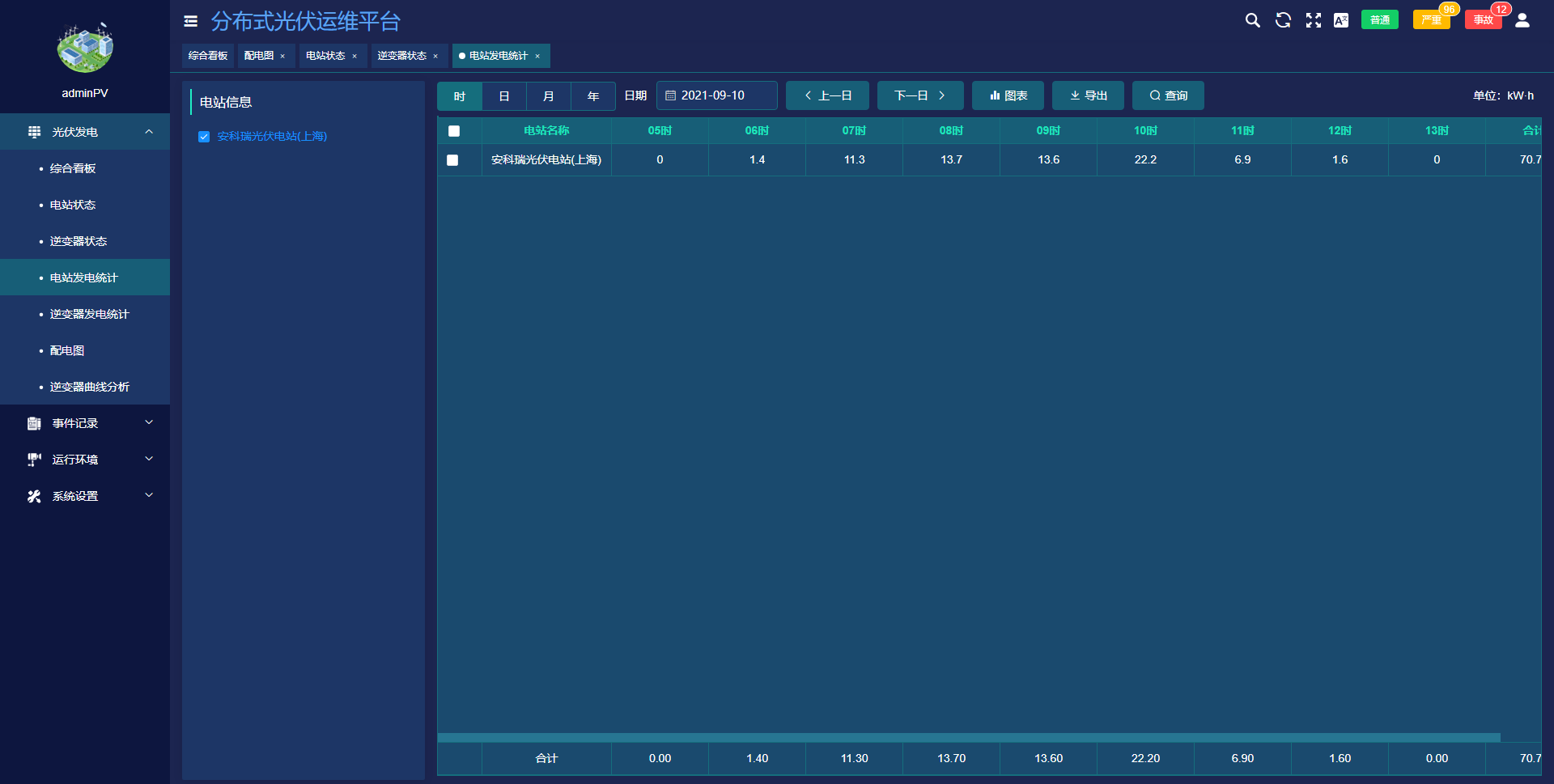 統計當前光伏電站的日、月、年發電量及發電收益。
